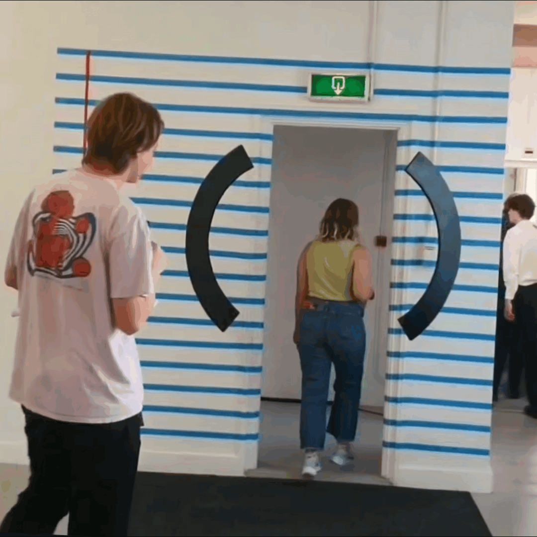 Hoe gemakkelijk worden we vergeten door haast of een tekort aan aandacht? Tijdens de expositie hingen de haakjes voor een deuropening. Zo werd iedereen die binnenkwam, even tussen haakjes gezet. Iedereen werd even bijzaak en bijzin. Even niet belangrijk genoeg.